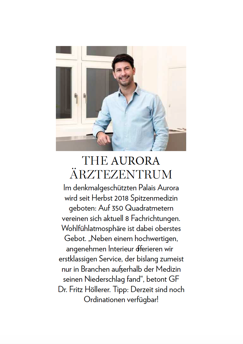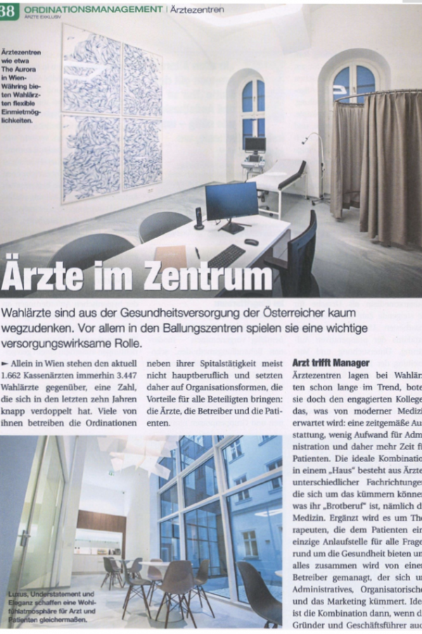 Österreichs Service-Magazin für Ärzte über die The Aurora Ärztezentrum Eröffnung